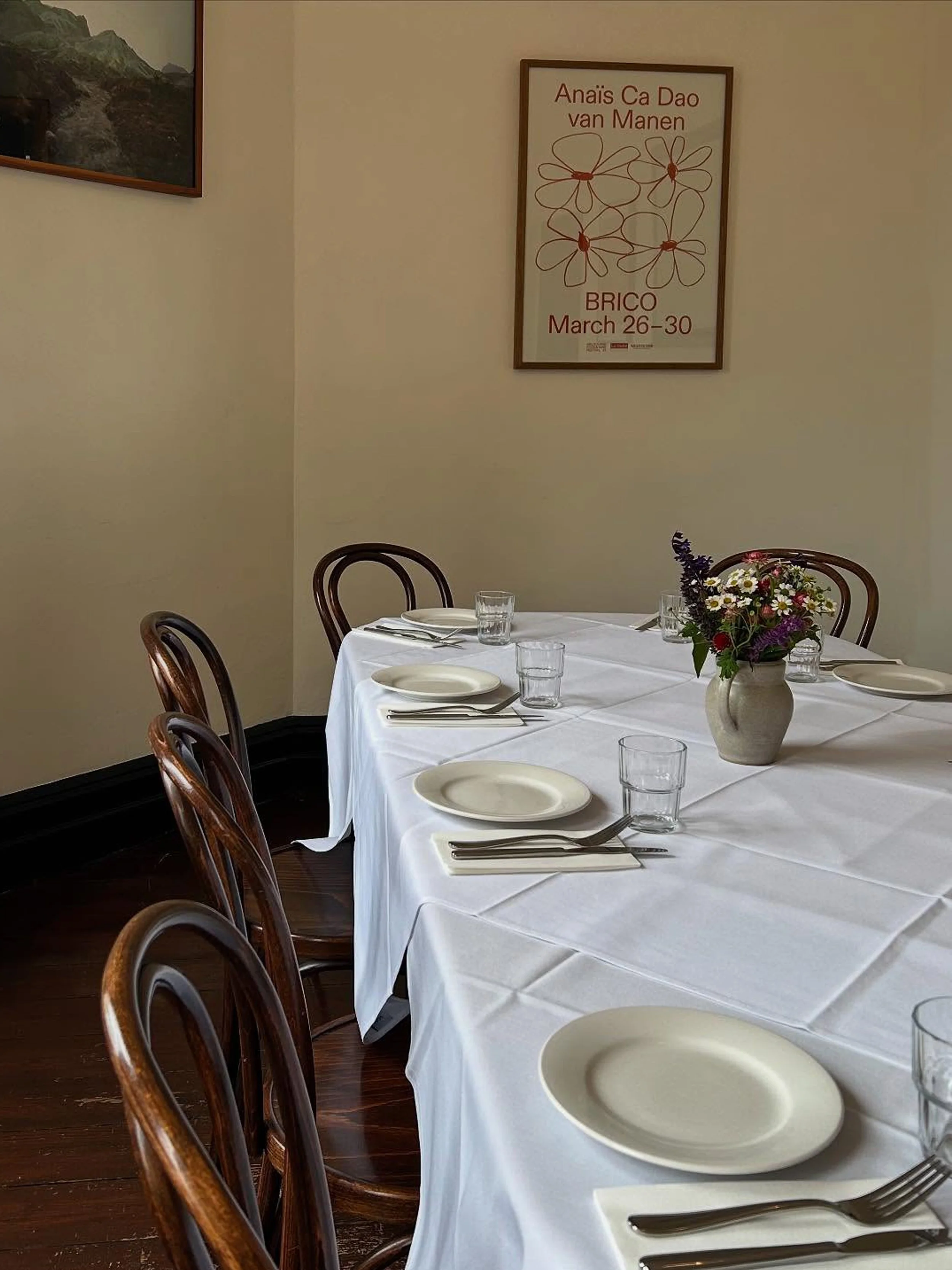 Brico’s private dining room is upstairs from the main dining area of the restaurant. Temperature controlled and with its own audio system, it can host groups of up to 14 people in an intimate setting. Please get in touch with any booking enquiries or questions, we’d love to hear from you.
